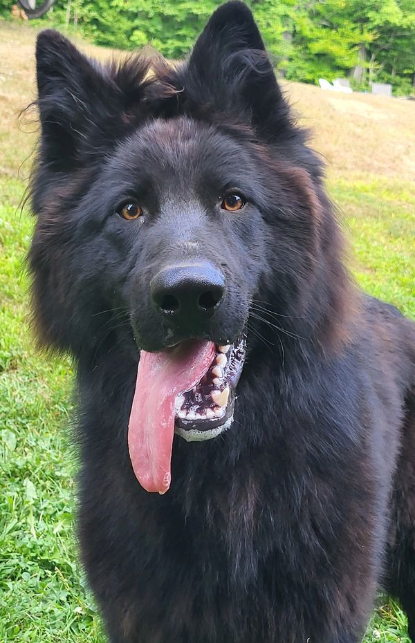 Along with his striking long black coat, Turbo is a sweet boy with an excellent temperament & of working DDR lines.